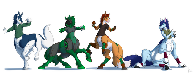 Hehe, I wasn't calling them centaurs, but taurs. It's a blanket term to describe all quadrupedal creatures who have an upper torso where a head normally is. I should know as I'm a taur, myself, lol: [link]