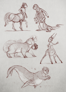 Oh wow! So many adorable taurs! I love the bunny showing off to the tiger girl (I think that's what they are...). ^^ I don't suppose you take requests, do you?