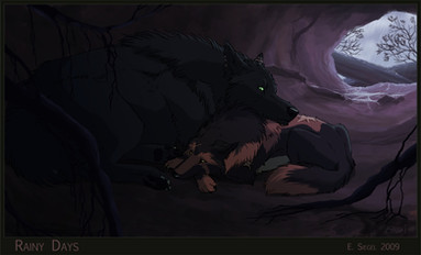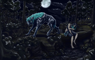 Whenever i do commissions, or anything for that matter, i always feel weird about not showing one character as much as the other. Like how you can see the whole body and any markings the attacking wolf would have, but you only see the back of the other (mostly). I feel like its keeping me from doing more interesting pieces like this, you did a nice job giving both of them justice.