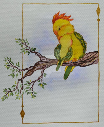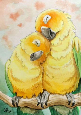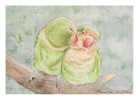 This is so cute! I cannot believe no one has commented on it. May I be the first to say: the colors are lovely, and the expression of the bird on the right is wonderful.