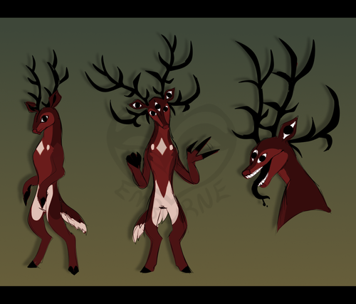 - like normal deer's; females have no horn. both of them have fangs and claws.