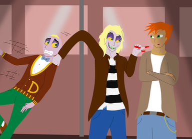 Personality: Donny is both helpful, cheerful, nice and outgoing. He want to see the Neitherworld as a better place to 'live' and anything he do is always done with a good thought. Unfortunate Donny is also very naive and really can't see the bad in people even if they jell it right in his face and like his older brother he is not very good with the other gender, he has really no idea what he shall do when they come too close to him. Again like Beetlejuice he has a way to drive people crazy because he is always happy, cheerful and nice. After meeting Ella(there took his blind-folders off) he begin to go up against his own brother's mocking and family wises to leave Ella, he even show that he can get mad if people say the wrong things to them he loves, other than that he is still the same Cheerful guy
