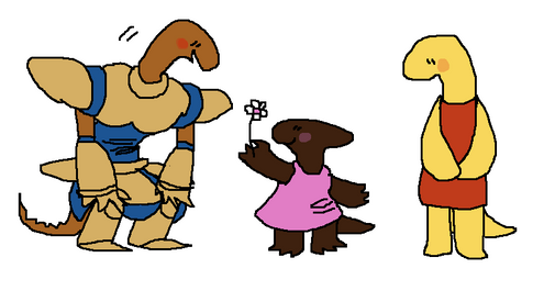 Salamandor - smallest of them all. comes in black/yellow/orange colors. lives in northern lands