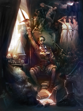 The chaos aroung him and the way everything is compact in a chlaustrophobic way gives the feeling he has been sitting there for a long, long, time.Your art really has something special about itself.