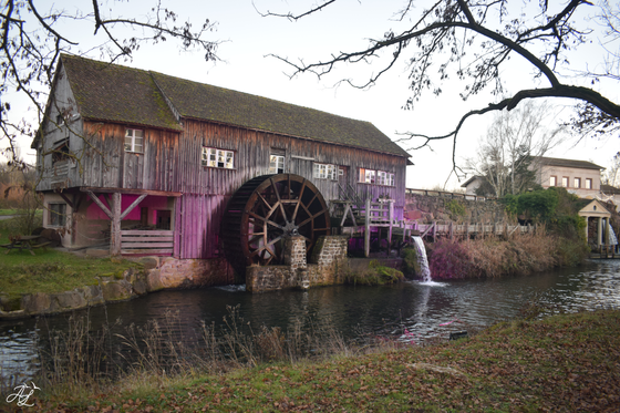 This is a lovely picture. But It feels like its missing something. The waterfall in the background is a fantastic visual, and the mill contracts it very well. But I think my eyes feel focus on the mill, or the waterfall. As all the boards on the mill either point towards the waterfall or towards the right. I'm not sure what could be done to improve the photo. Perhaps cropping the image to focus more heavily on the mill, and the waterfall alone might do the trick. Another suggestion could be getting a different angle. Regardless of the possible improvements to the photo this looks like a lovely location to get a lot of really cool shots. May I take a shot and try to edit the photo and create my own version? Id crop it and possible tilt the image and perhaps change the color slightly.