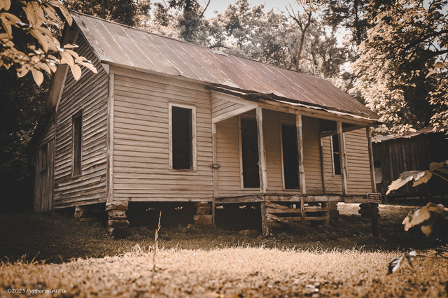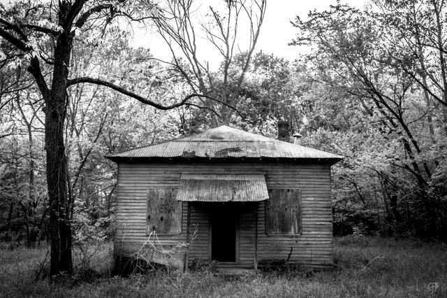 This is a really pretty photo! I like how the house is well-framed and that the contrast makes it stand out from the trees.