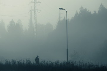 #fog #man #blackandwhite #city #dark #darkknight #darkness #dog #foggy #misty #street #foggylandscape