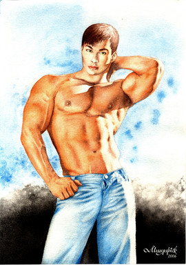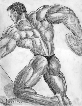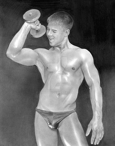 You make bar bells I like the look of motion and power you added to him. He looks as if he truly is working out that fantastic body.