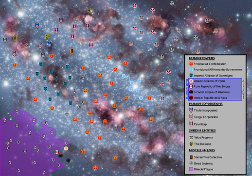 Now, you may ask "Why are the Firefly factions here if Earth got used up in Firefly?" I'll tell you. In the chaos that existed before the founding of the UPL, a small fleet of warp-ships was built by people who wanted to leave Earth. The only countries that could build these ships at the time, were the US and China. And "Earth-that-was" was invented as a way to explain why they left. After the events in Serenity, political unrest has arisen again, and worlds want independence from the government that formed the Reavers. So the Browncoats are arising again.