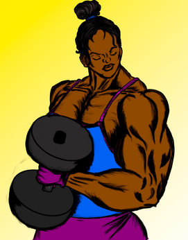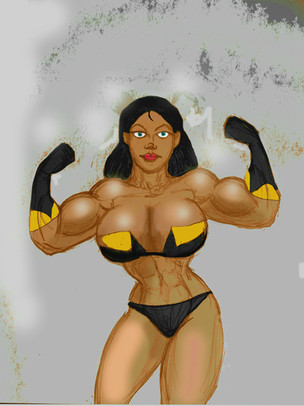 ficou legal a veia pulando, mas acho que ficaria bem mais intenso o efeito se vc tivesse feito o braço dela tremendo um pouco pra dar a impressão de que ela está flexionando com força o bíceps.