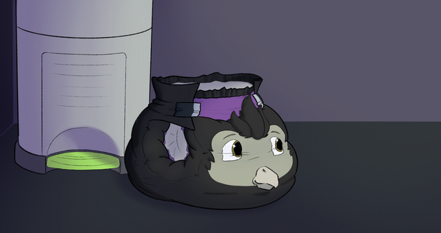 He didn't move at first as he felt the plastic settling over him as he could hear the other two walking around the lumpy bag. Before he heard the clicks of phone cameras going off before his now very crinkly butt was nudged. "Go ahead and squirm. It'll look better on the video!" Jason encouraged as Zari erfed and held his blushing muzzle as he started to jiggle and wriggle. A veritable orgy of crinkles, scrunches, squeaks, and crackles from the double diapered up possum and his trash bag container filling the backroom and most of all Zaris big ol dish ears. It was...amazing. Before he epped! in surprise again as he felt hands grabbing the bag and lifting him up! The bag shifting and swinging side to side as the two carried it back to the dumpster and after swinging it back and forward let it go! Sending Zari up and into the dumpster! To squish and squelch on top of the other bags in there. Landing thankfully softly but still on his head as he was a little stunned.