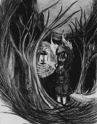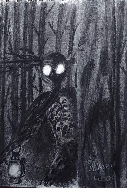 A creature that lives in the heart of the forests, with only one objective, to protect it.note: drawing made to practice painting in black and white