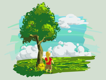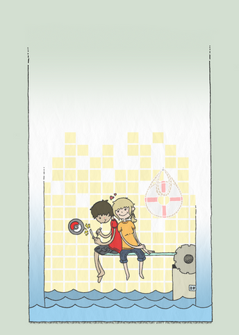 "Every evening, the lovers saunter through the forest hoping to catch a fallen star. With it, their dreams of flying may become a realityβ¦"Because I wasn't a big fan of how the pixelated version turned out (see below), I did a digitally coloured rendering of the same sketch.