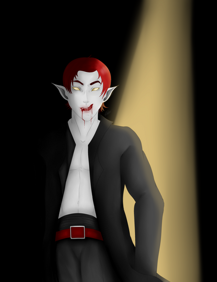 This is another vampire I created. His name is Kotarou "Lionel" Torachi. His friends call him Rai. He dyed his hair red because I'm obsessed with red hair on men. His design is based mainly on Eric Draven and Blade. I've changed it since drawing this. He now wears a mask and hood.Rai belongs to me.