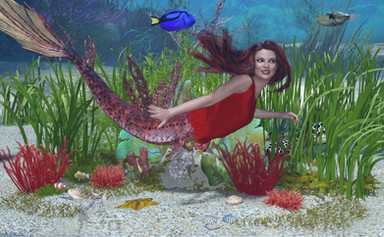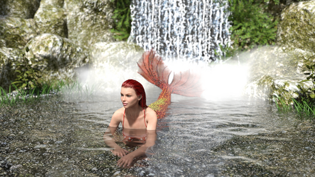 #3d #daz #fantasy #girl #merfolk #mermaid #red #shower #water #waterfall #woman #fae3d #daz3d #digitalart