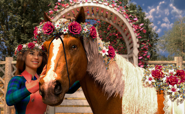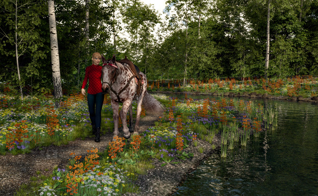 His plans turned out perfectly, she had always wanted to go horseback riding!Rendered in Iray