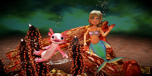 This little mermaid seems to have an interesting collection… I’m sure she’s not gathering a horde of magical fishy minions to help her take over the oceans or anything like that…Rendered in Daz Studio Iray.