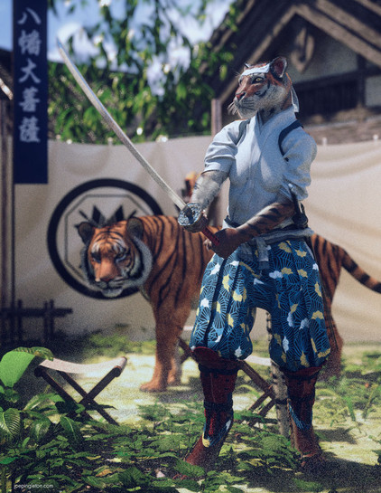 #digitalart #samurai #fantasyart #fox #3d #alert #autumn #conversation #daz #daz3d #fall #foodog #fudog #hat #iray #katana #male #man #render #sword #talk #talking #warrior #foxtober #fae3d