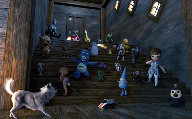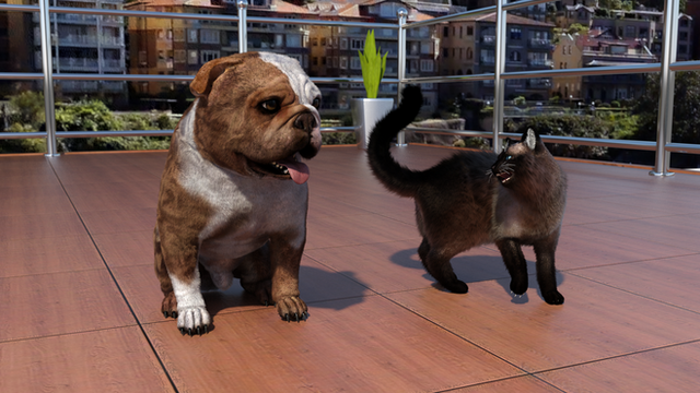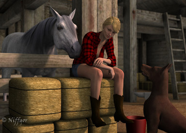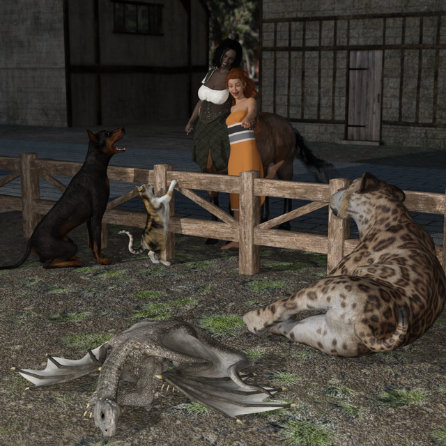 All she wants to do is open the window, how is she going to walk around that pet pile? Oh well, at least they're happy.Rendered in Daz Studio Iray.