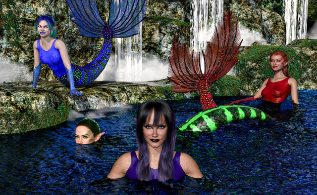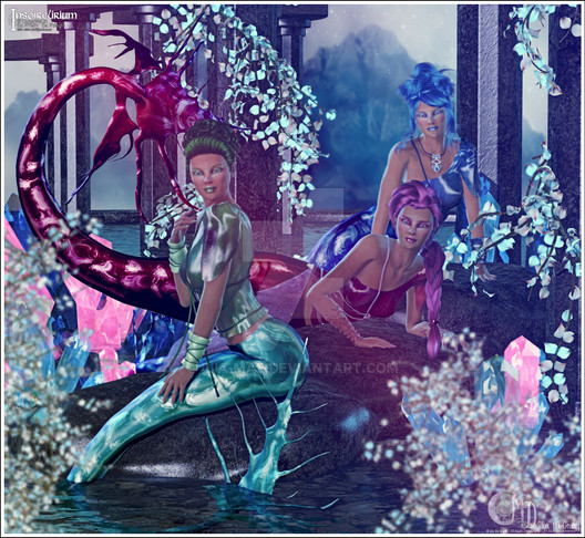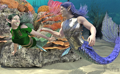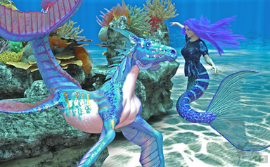 A couple of mermaids decide to see just how fast their seahorses/hippocampus can swim!Rendered in Daz Studio Iray.