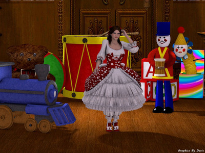 There’s a contest going on in the Daz forums, where we are supposed to make a tribute to our favorite vendors. “SloshWerks” just very sadly passed away, and was the inspiration for the contest, so it seemed fitting to make the first one in his honor. I used 8 of his products in this one image (I own many more than that, but these went together well for the picture), almost everything in the picture is his. It’s a pair of twin girls all dressed up in super cute clothes on their birthday, going shopping for toys and treats.Rendered in Daz Studio Iray.