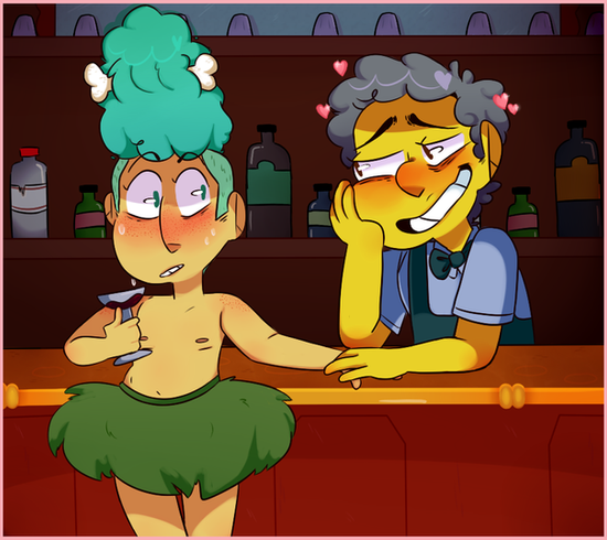 The most striking part of this is Lois' eye (so cute yet so angry). I can see their personalities clashing at first. Lois likes Krusty, but Bob is the favourite. So Bob rubs it in her face, getting her envy to spike.