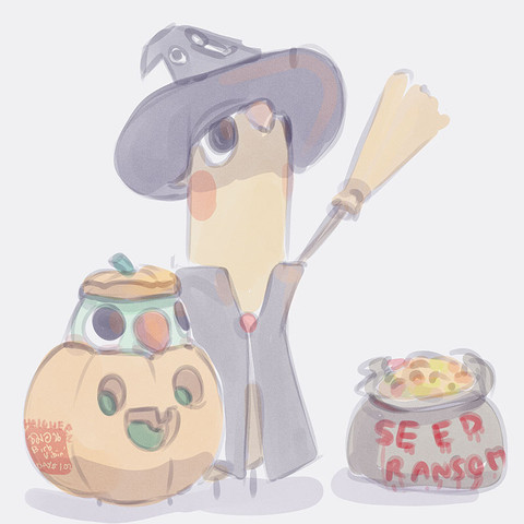 Oh no! its a handsome little good boi in a very fesitve outfit with seebs. Who could ask for anything more! 👻🦜🌱Related content