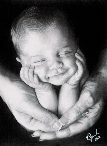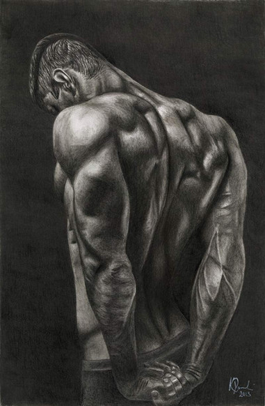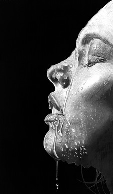 Derwent graphic pencils, HB,B,3B,6B&8B, and Mont Marte charcoal pencil on A3 smooth Quill Board paper.