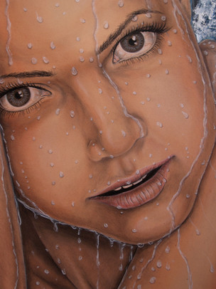 This is very pretty, the detail on the water is gorgeous. It looks to me, though, especially after viewing the source photo, that the nose looks twisted, I think mostly because the left nostril is extending too far down. I think the right eye is too far in, too, but that honestly didn't bother me that much because it looked like a stylistic choice whereas the nose is throwing the shape of the face off a bit. I really do this this is beautiful, though, and captures your source image well, especially since reflective materials are so difficult to render. Good job!