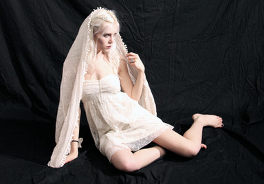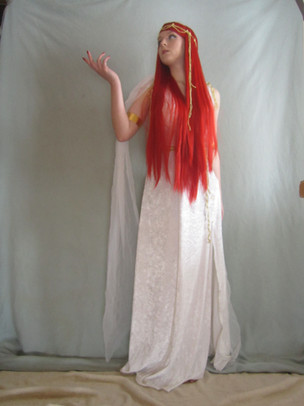 That is so beautiful, a romantic woman in the white dress. The brown long hairs are so sweet, the hair-style is so fashinably the view so dreamly, the folded hands very nostalgic, a woman such as out of an old Celtic Germanic myth.