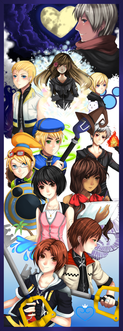 Ja tää kuva on tosi hieno, tykkään kaikkien ilmeistä ja asennoista ja silleen.. Anatomia näyttää ainakin mun silmiin oikealta. :3 ...But, wtf is Roxas doing? Is he falling? xD'