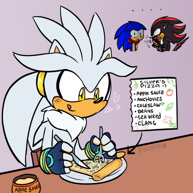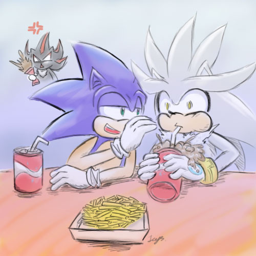 lol sonic i new you would say that.... what would shadz eat though.... dont know what he likes..and silver your not allowed to eat sonic....!