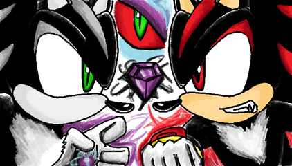 Woah, you seriously shocked me with this! This picture is just awesome in every form. SilverΒ΄s expression makes him look like a little kid, like he is in your chibi comics. I like how you coloured ShadowΒ΄s hand around the emerald - it gives the feeling that the emerald is actually glowing! And I donΒ΄t think you failed at ShadowΒ΄s head, it looks heaps nice.