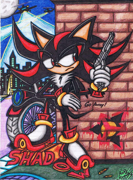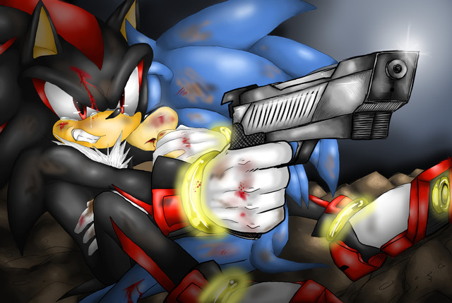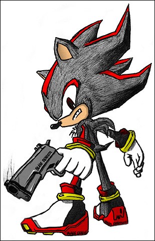 I can imagine Shadow wit a gun but Sonics too soft for one O_o