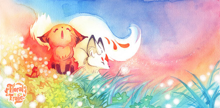 Wow, this is really pretty with the mix of colours and whatnot. Is it watercolours? Oh, and foxy's cute too.