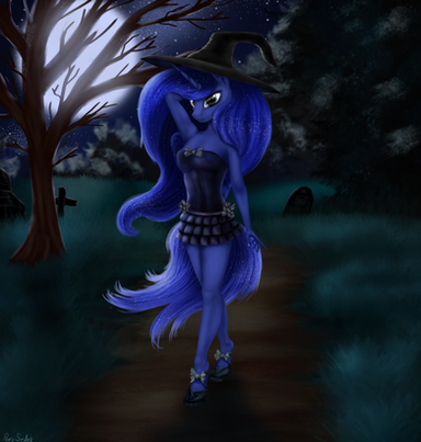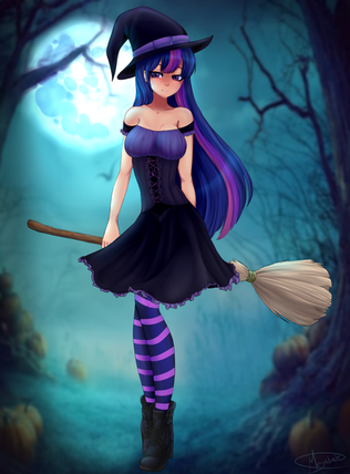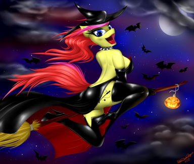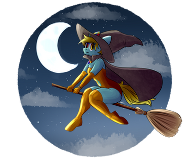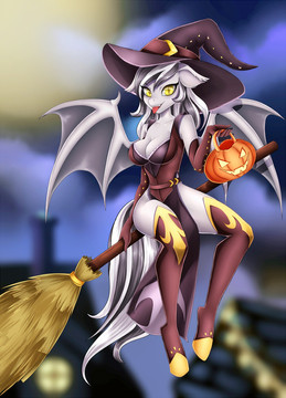 #anthro #anthropony #bat #broom #digitalart #digitalpainting #female #girl #hat #moon #pony #ponygirl #shoes #socks #tail #wing #witchhat #halloween
