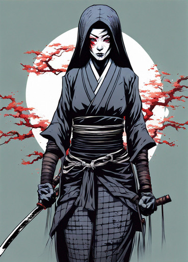 #digitalart #characterdesign #videogamefanart #warrior #samurai #kimono #characterillustration #ai #dreamup #animegirl #fantasyart #oni #ai_art