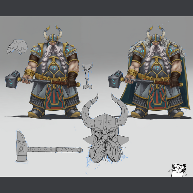 Never make an dwarf angry. Here we have the Lord of the Stonehsield clan: Loni Thorargrimmson or Loni Stoneshield. He is stubborn as any other dwarf and a fierce fighter. He wields a mighty Runeaxe and a shield engraved with even more powerfull runes.He holds many grudges against many foes and never surrendert .