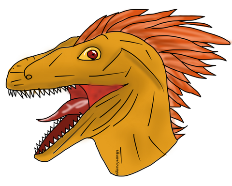 I'm not sure if people have actually agreed that this animal was venomous. The supposed "venom channels" that its teeth possess are simple and are found in many other animals such as mandrills, who use these channels to bite into fruit and take their teeth out with no suction. The fact that these grooves are also present in most, if not all, theropods tells us that the resemblance of this dinosaur's teeth to the boomslang snake (which is poisonous and has rear-facing fangs) are only superficial and not a sign that it was venomous. Still, this is a great drawing. Instant fave.