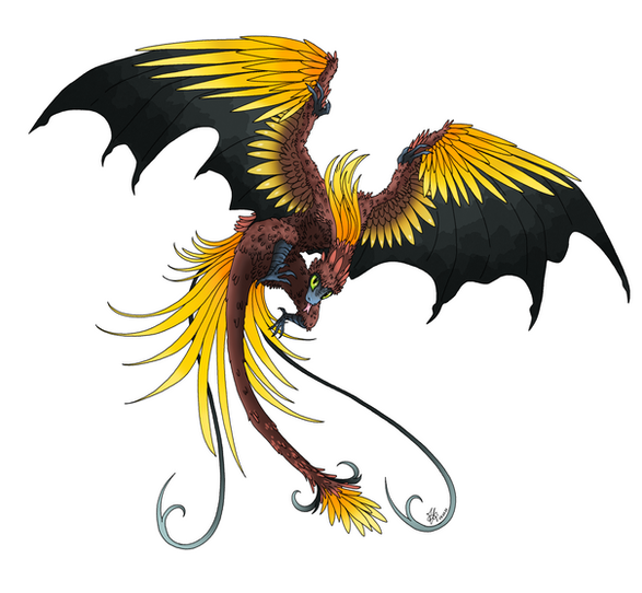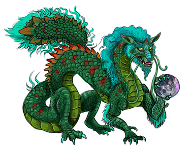 Yinglong-(Chinese:应龙, means the dragon of responsive),the gaint winged dragon from the ancient Chinese myth, the powerful allies of The Yellow Emperor. According to legend, if dragon can live for a thousand years, the scales on its forelimbs would evolved into feather, its front legs become wings.Related content