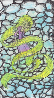 Anyways, so I've been assigned to these group therapy things that last all fucking day and I keep falling asleep in, and at the beginning of the day they have us write a few things down i.e., how are we feeling, and they have us set a few goals. My goal for tonight was to draw a full-color picture, so here, after one viewing of Brave, three hours of oil pastels, and one slightly rumbly tumbly later, we have this.