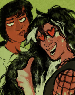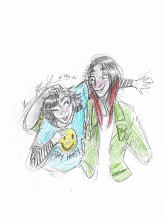 ANYWAYS, so here's Beth Sparks, a bit of an attitude gremlin that has vaguely changed into multiple iterations depending what I felt like drawing from time to time. She's been through some odd disjointed concepts, from a moody teenager making her ordinary life more interesting by betting her soul to the Devil on a daily basis (yeh that's not a turn of phrase, that's what the premisce was), to a superhero with questionable morals and electric powers (little bit of a wink to it in the drawing), to an enthusiastic hunter of giant bugs... that's a lot. But she's mostly a dysfunctional teen who should definitely consult a psychiatrist and learn to be less of a toxic friend.