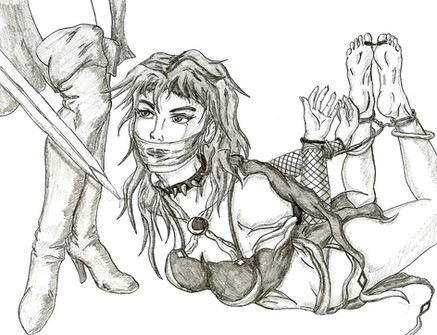 Note: Bookbinding and Demon's Due are a work of fantasy and fiction. The artist/creator in no way condones real mistreatment of this kind toward any woman or man, by living person, gremlin, plant, assassin, ratman, viscous fluid, programmed device, animated home furnishings, or otherworldly spiritual beings. Furthermore, the artist opposes the marginalizing and restriction of women in general by any institution, political and/or religious, including those which have individual women amongst their membership touting/promoting their own happiness within that institution as evidence that ALL women should feel the same way. This includes the religion I was raised in and which I have utterly discarded from my life over this and other issues.