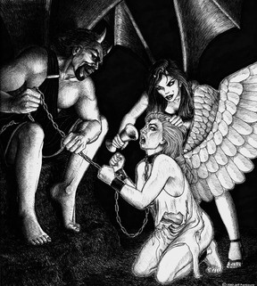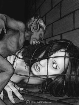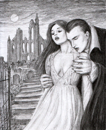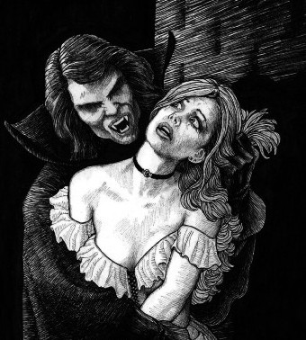 i love the idea. i always imagine vampires as forcing their victims rather than seducing them. the expressions are perfect. she looks terrified but also slightly intrigued by the man. very well done.
