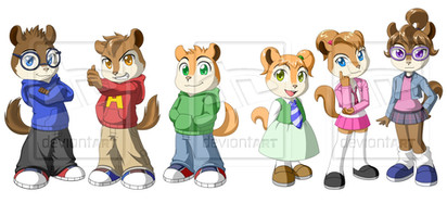 I wanted to see if I could draw the Chipmunks in the style of The Chipmunk Adventure movie, but I couldn't bring myself to give them only four fingersLooks kinda like Alvin is gonna walk into Brittany...