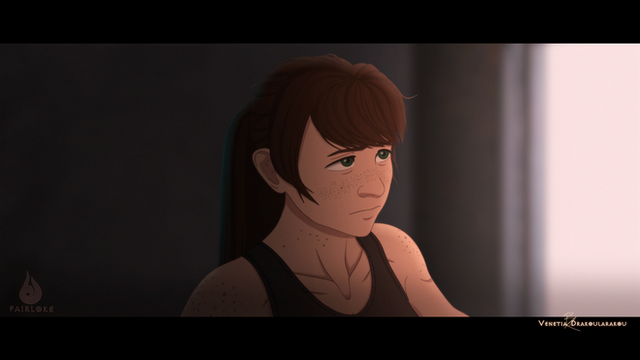 The expression and emoting are also very engaging. It makes the viewer very curious about what is going on in their mind. The eyes are well done. The style seems a bit more engaging than typical Japanese inspired anime/manga styles due to the nice character design.