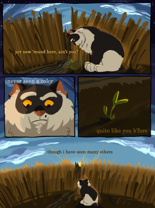 HIII I STILL STAN THIS... the general atmosphere is so nice, it really sets the scene. I love how little you drew my kid... they're a little bundle of kitten rage <33 bless this