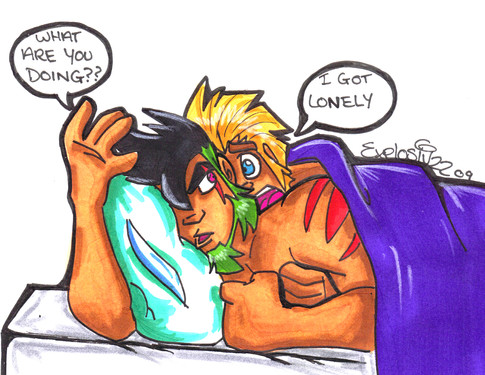 This is so freaking hilarious omg I just love Rayman's face it priceless and pulls this pic together X'D lol I love how he is looking under the covers it kills me every time I look at this pic CB love it~