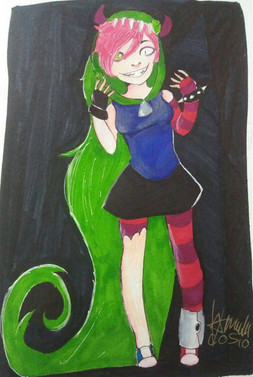 Personality: A shy and quiet girl but her personality flips when she's angry she gets louder and bolder. She can be bold and confident. When with a friend she will only talk to a friend or someone she trusts. She also will lock herself in her room with her snake just to hear music. She doesn't say how she feels.