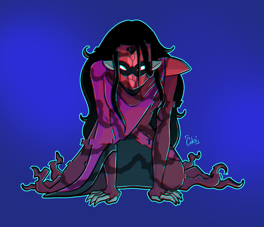 The liquid was something I didn't quite get, I loved drawing it but the "oozing black liquid from eyes and nose" kind of grossed me out (made me think of mucus xD), so I went with a more diluted version of it